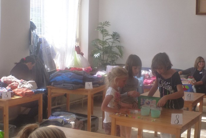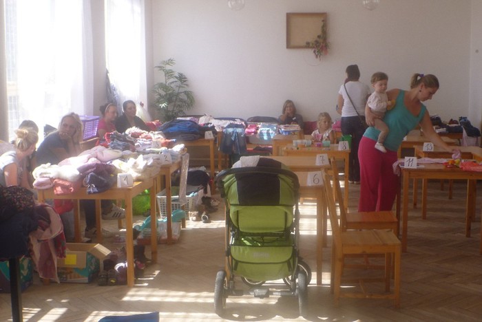 Pár fotografií z prvního bazárku dětského oblečení, který zorganizovaly naše maminky.