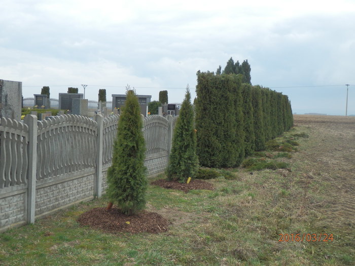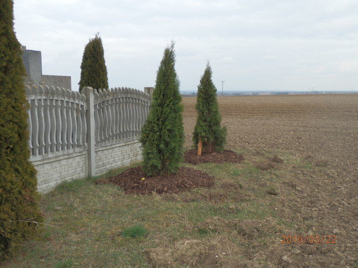 Na hřbitově kolem plotu bylo dosazeno 9 ks tújí, které v minulosti uhynuly. Dosadbu provedl pan Kotrč. Zároveň byly již vzrostlé túje zastřiženy tak, aby se vzrůstem přiblížily nově vysazeným stromům a zároveň aby se zahustily. Děkujeme Radkovi Beňkovi ml.