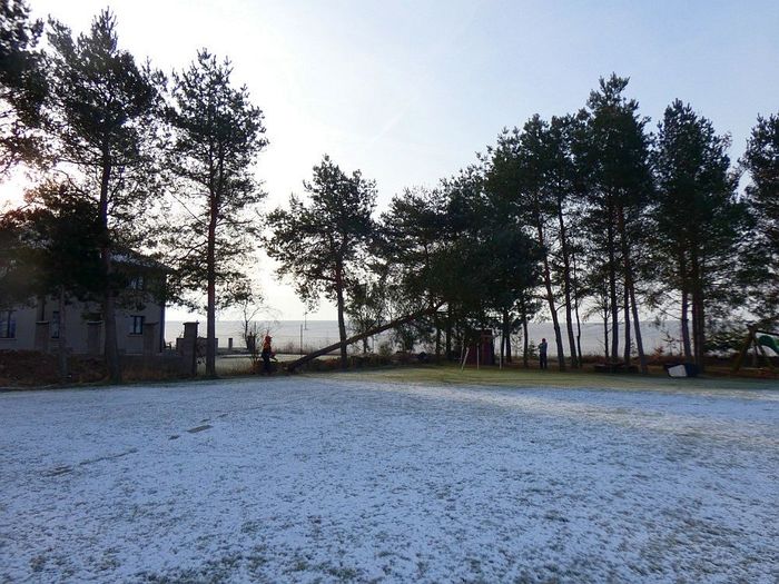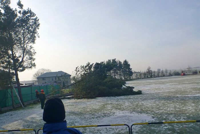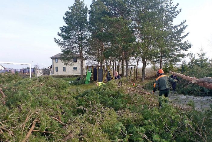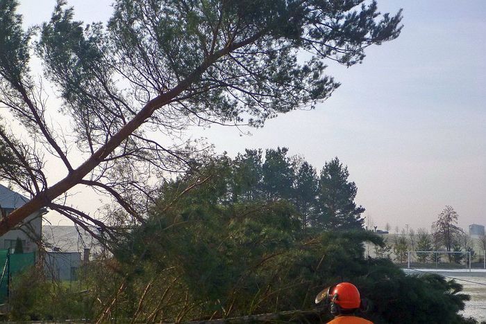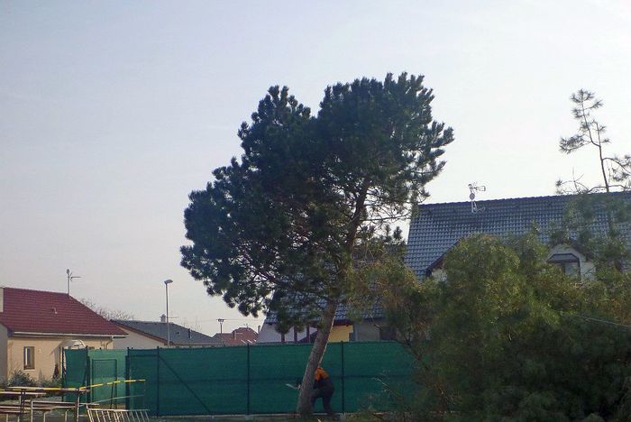 Kmeny některých borovic byly nebezpečně nakloněny a hrozil pád stromů a větví na přilehlé soukromé pozemky sousedících rodinných domů, větve stromů zasahovaly do plochy hřiště, kořenový systém narušoval plochu hřiště (vystupoval nad travnatý povrch). Při padání větví by mohlo dojít i k újmě na zdraví osob.