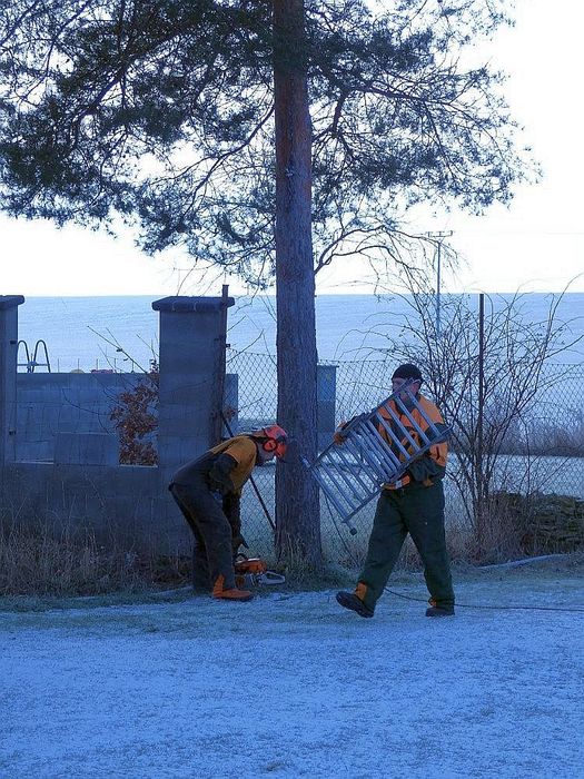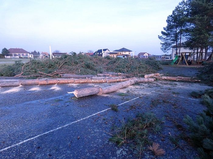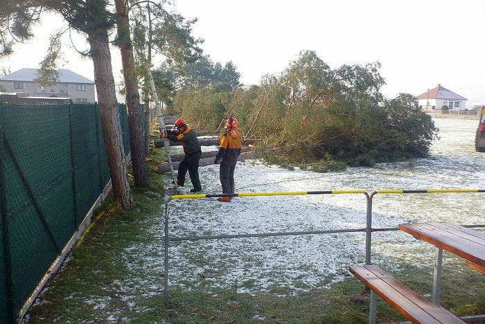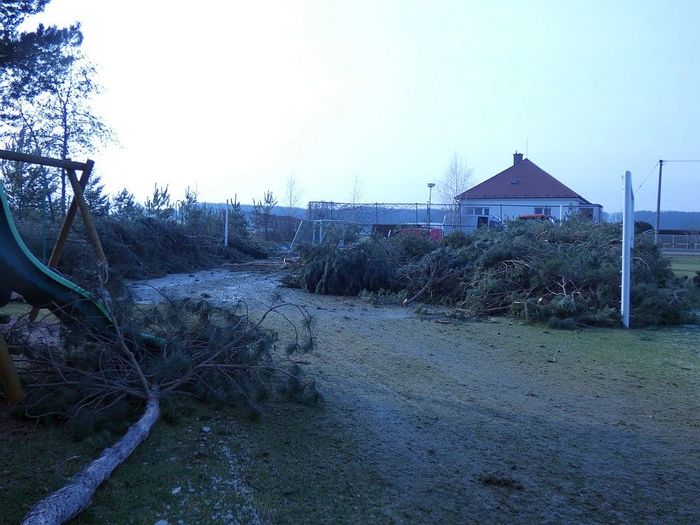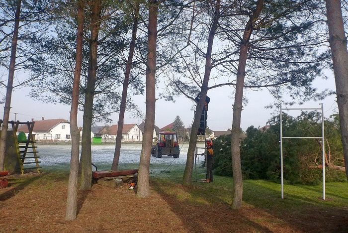 Kácení borovic včetně vyfrézování kořenů a likvidace hmoty bylo zajištěno odbornou firmou pana Lubomíra Kamenického, Kladina 8, Sezemice, která od obce také pokácené dřevo vykoupila.
