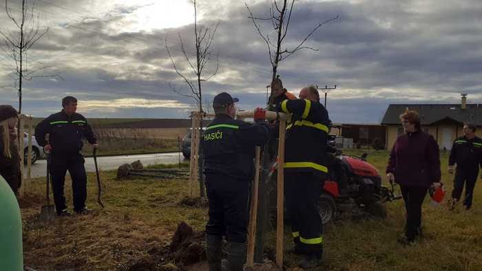 Děkujeme všem brigádníkům a hlavně našim hasičům, kteří si výsadbu vzali pod svá křídla a v rámci desetileté udržitelnosti přislíbili se o stromy starat.