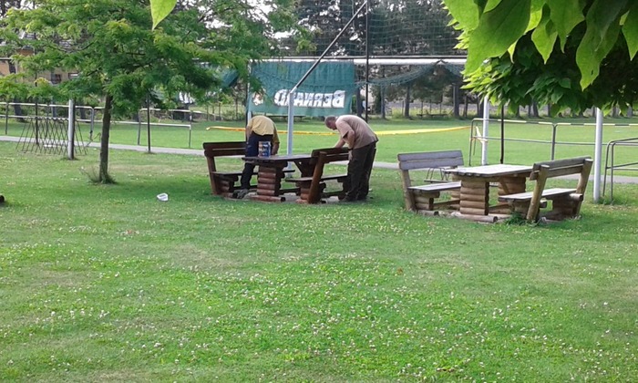Úvodní stránka > Občan > Fotogalerie > Údržba stolů a lavic u hřiště 2017