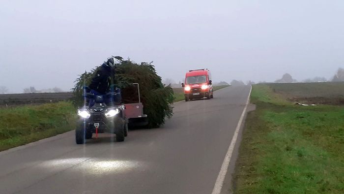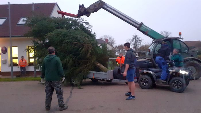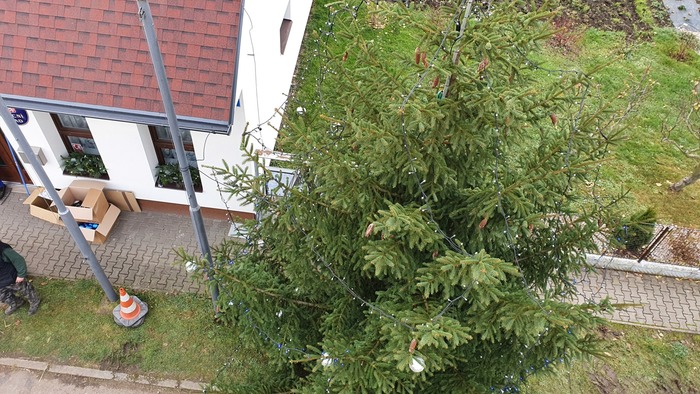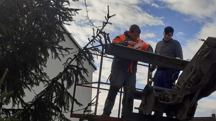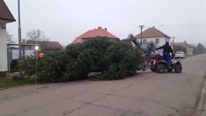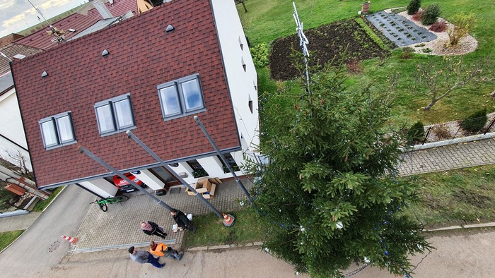 Tak alespoň pár fotografií z jeho kácení, dovozu a strojení.