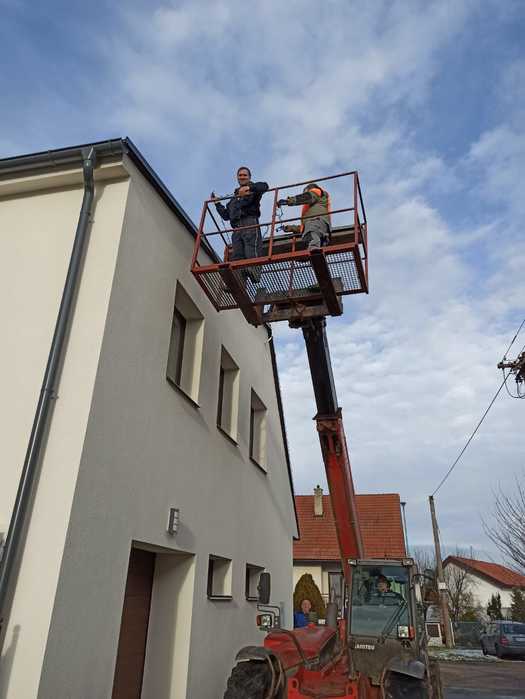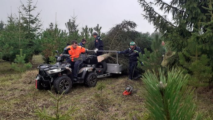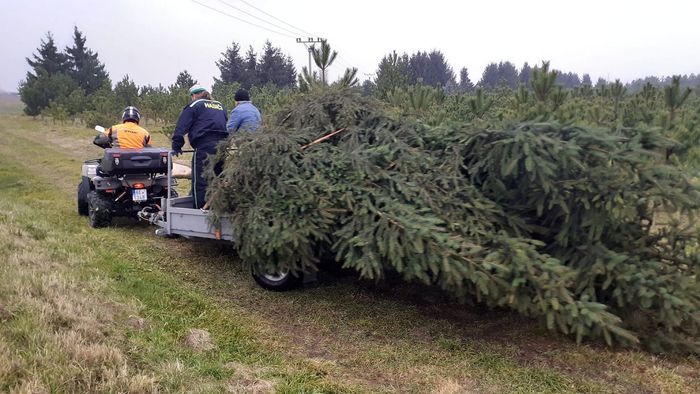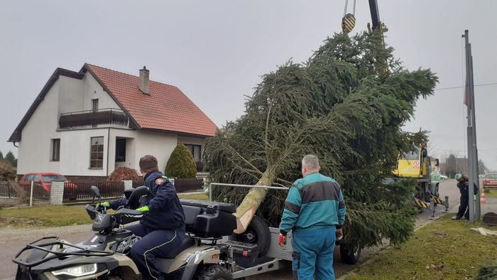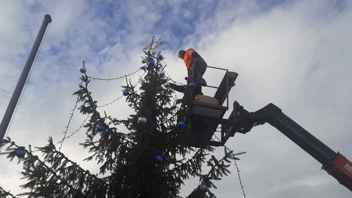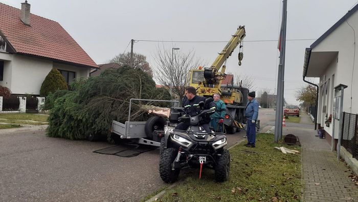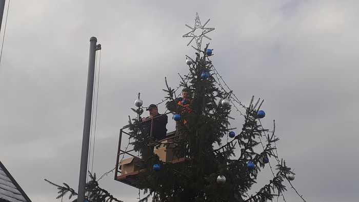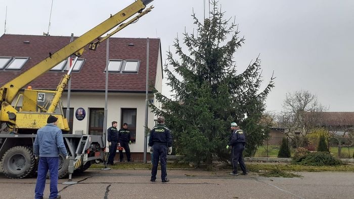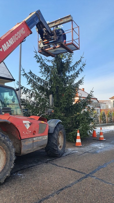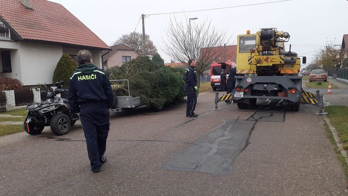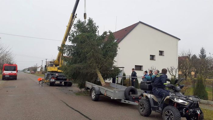 Zde je pár fotografií z jeho kácení, dovozu a strojení.