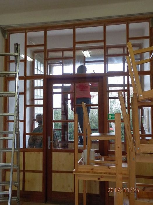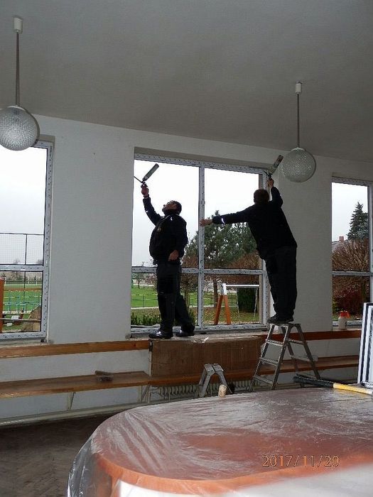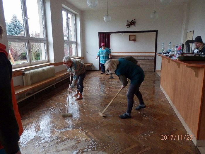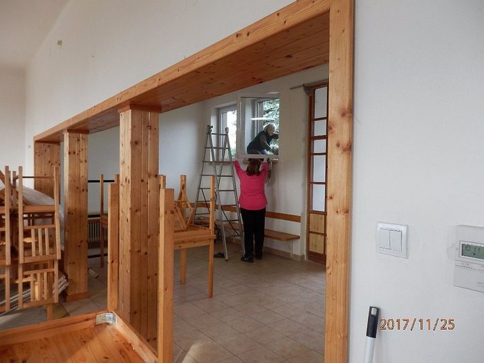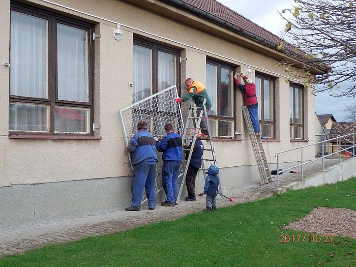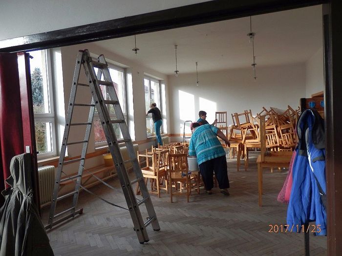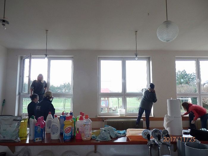 Na soboru 25. listopadu byla svolána brigáda na úklid. Všechno se stihlo za jeden den. Děkujeme všem brigádníkům, kteří obětovali sobotu a přišli pomoci. Jste bezvadní. Díky i všem klukům, kteří před výměnou sundali z oken mříže.