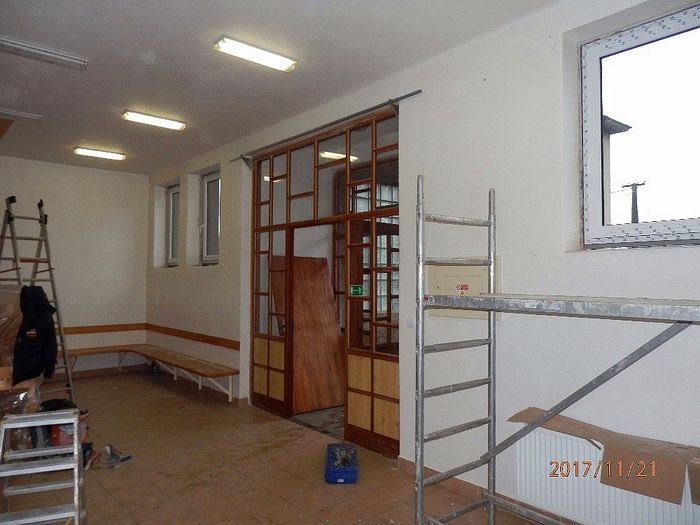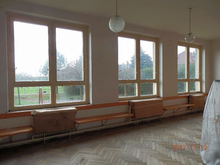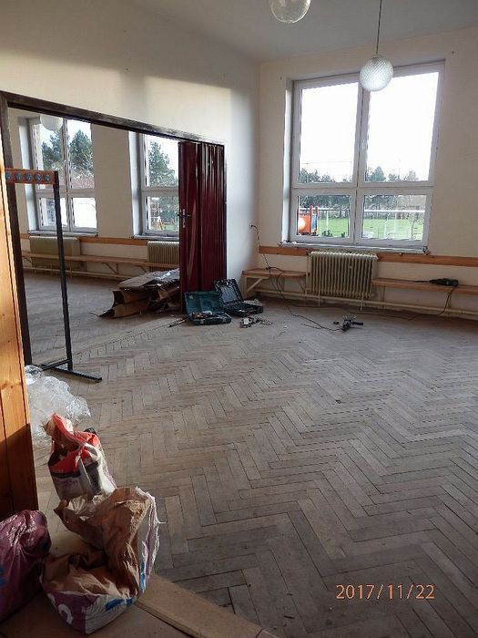 V příštím roce 2018 budeme s rekonstrukcí pokračovat. Počítáme s výměnou celého otopného systému, vybroušením a nalakováním parket, úpravou bývalého vchodu a natřením fasády.