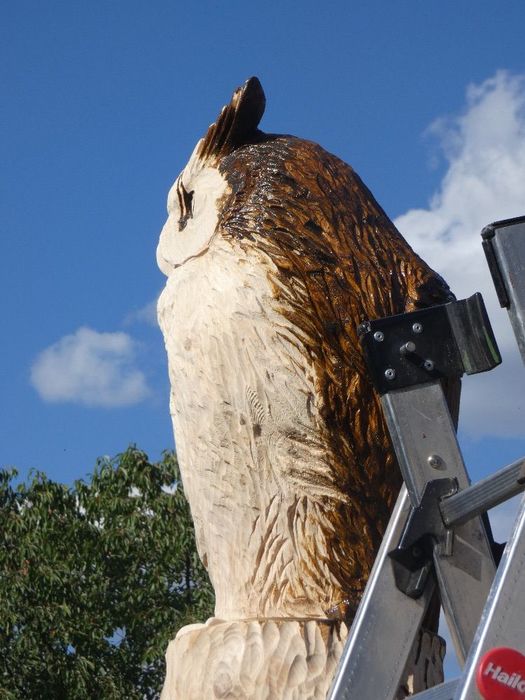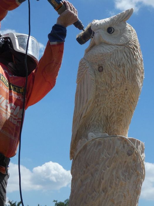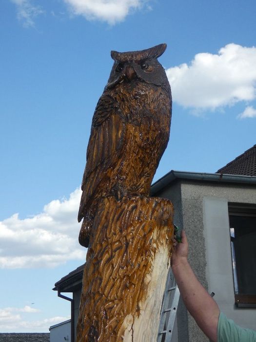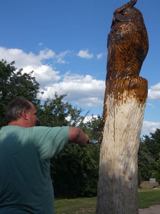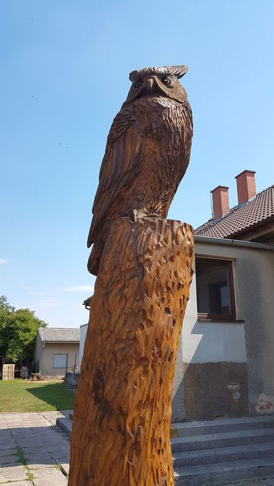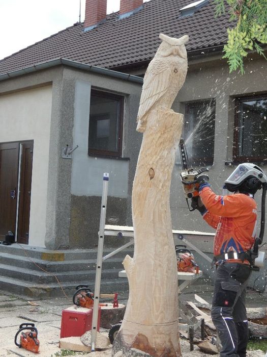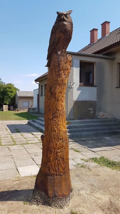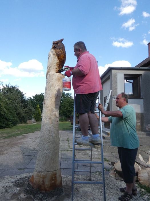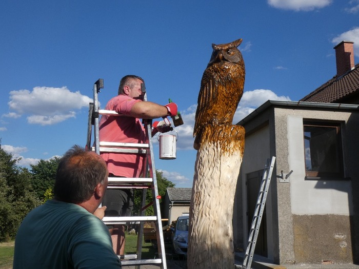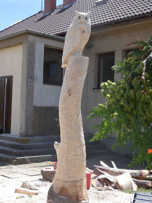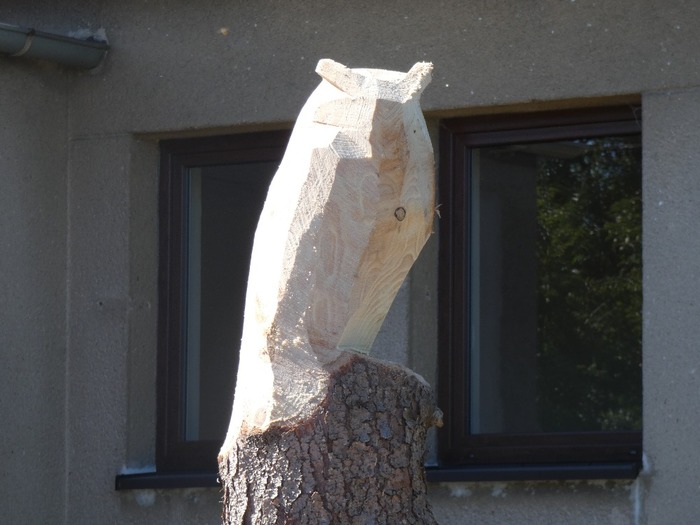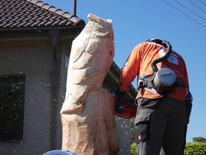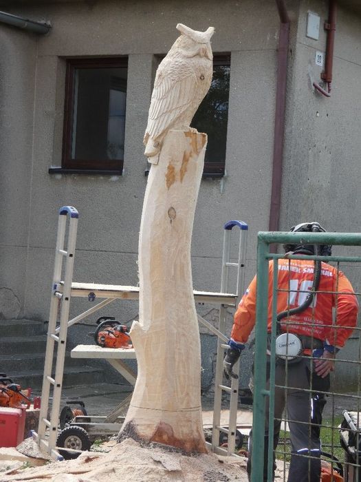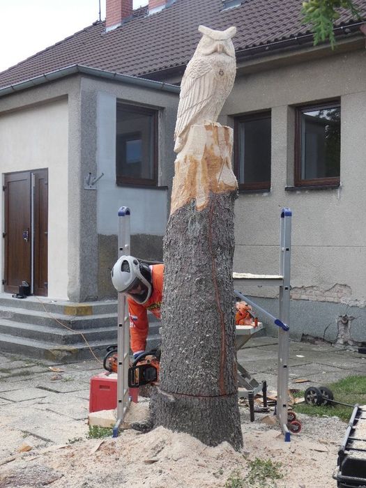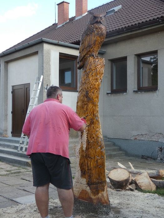 Máme nového strážce našeho obecního domu - Bubo bubo (Výr velký).Děkujeme řezbáři panu Radkovi Smejkalovi za krásnou práci motorovou pilou. Opravdu se povedl.Můžete se podívat i na krátké video